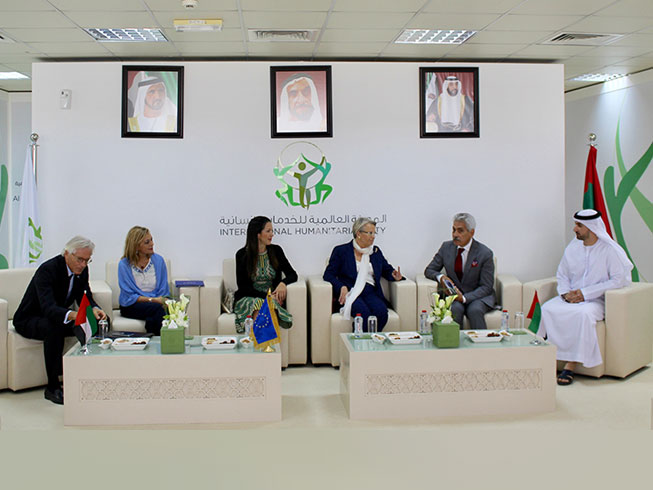 Headed by HE Michèle Alliot‐Marie, a delegation from the EU Parliament visited IHC today. On behalf of IHC Chairperson, HRH Princess Haya Bint Al Hussein, wife of HH Sheikh Mohammed Bin Rashid Al Maktoum, Vice President and Prime Minister of the UAE, and Ruler of Dubai and Board of Directors, the CEO, Giuseppe Saba, welcomed the delegation and demoed the Humanitarian Logistics Databank which was launched in early 2018. He also gave them a tour of the showroom where they met with representatives from various humanitarian organizations hosted in IHC.